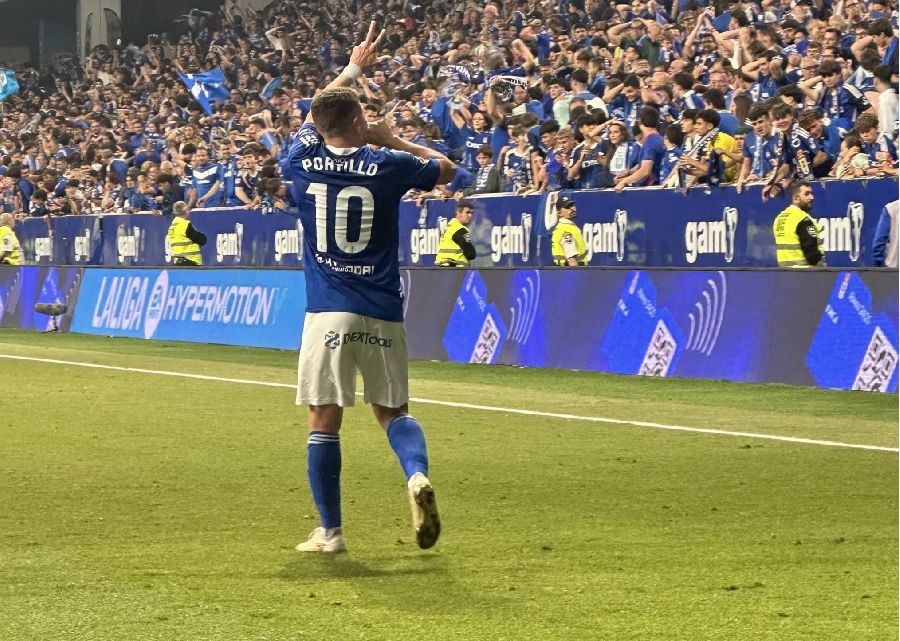 Santi Cazorla empató de penalti y, en el segundo tiempo, Ilyas Chaira hizo el 2-1. En la prórroga, donde al Oviedo le bastaba con mantener el resultado para lograr el ascenso por haber terminado mejor que el Mirandés la temporada regular, Portillo controló un balón llovido y, a la media vuelta, fusiló la escuadra.