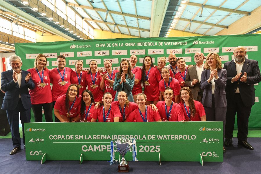 Por primera vez en la historia de la competición, el equipo campeón ha recibido el trofeo de manos de la Reina, que ha presenciado el partido en el palco junto a la ministra de Educación, Formación Profesional y Deportes, Pilar Alegría, y el presidente de la Real Federación Española de Natación (RFEN), Fernando Carpena.