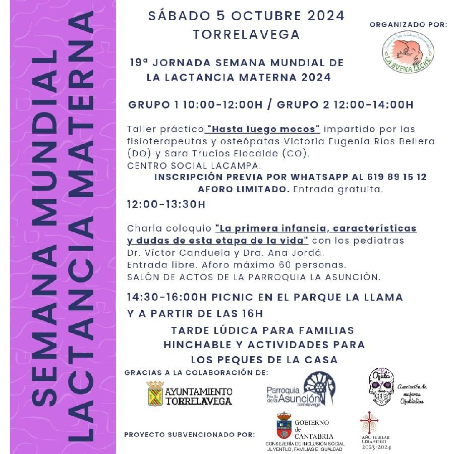 La asociación La Buena Leche celebrará este sábado 5 la Semana Mundial de la Lactancia Materna con una jornada que tendrá lugar en el parque de La Llama de Torrelavega con talleres, picnic, hinchables y actividades gratuitas para niños.