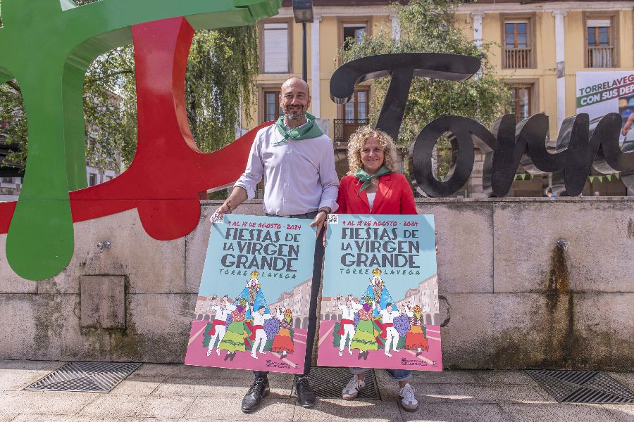El alcalde de Torrelavega, Javier López Estrada, y la concejala de Festejos, Patricia Portilla, han presentado este martes la programación de las fiestas de La Patrona y el cartel anunciador de las mismas, realizado por el artista local, Pepe Terán, y que representa "nuestras tradiciones y un lugar emblemático como es la Plaza Baldomero Iglesias".